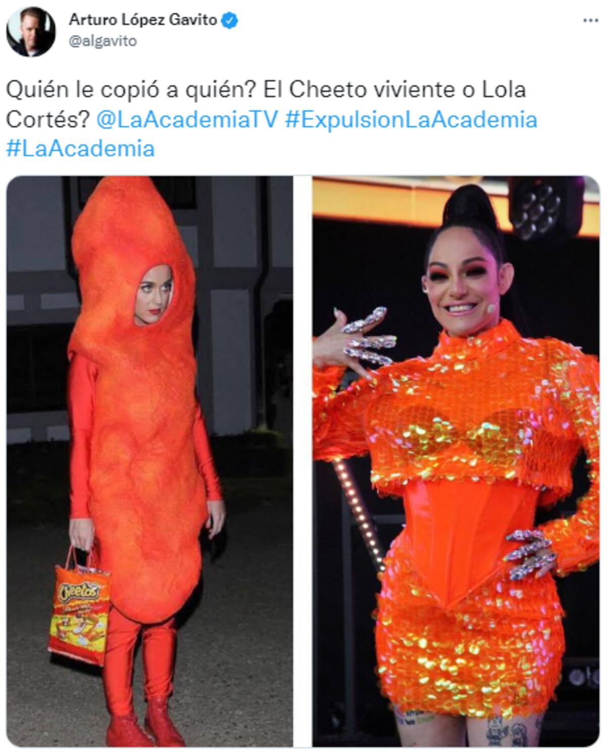 Incluso, Arturo López Gavito hizo mofa de este look y la llamo un “cheto viviente”, así como también la comparó con el disfraz de cheto que en alguna ocasión vistió la cantante de fama internacional.