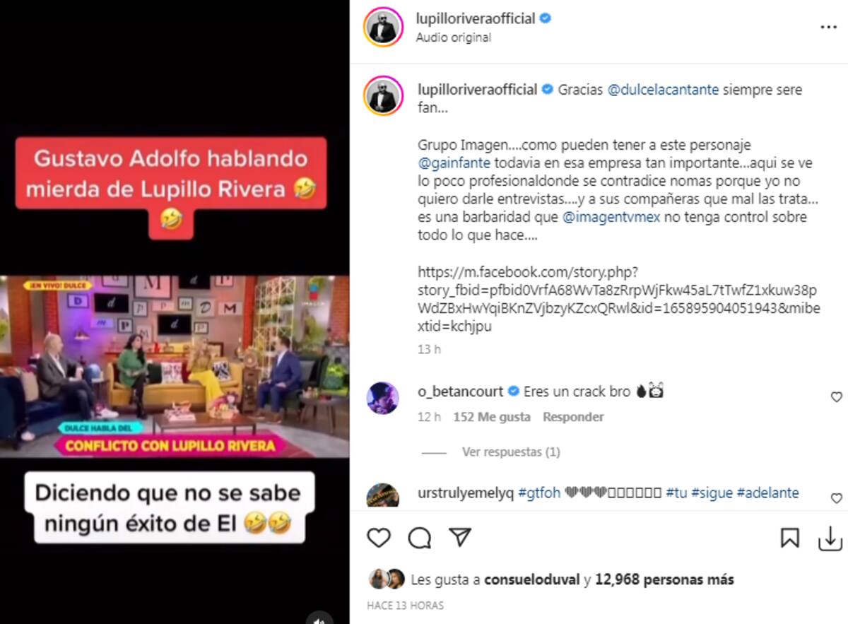 Tras la publicación de Lupillo Rivera en sus redes sociales, ni el periodista, ni la empresa de espectáculos se han pronunciado al respecto.