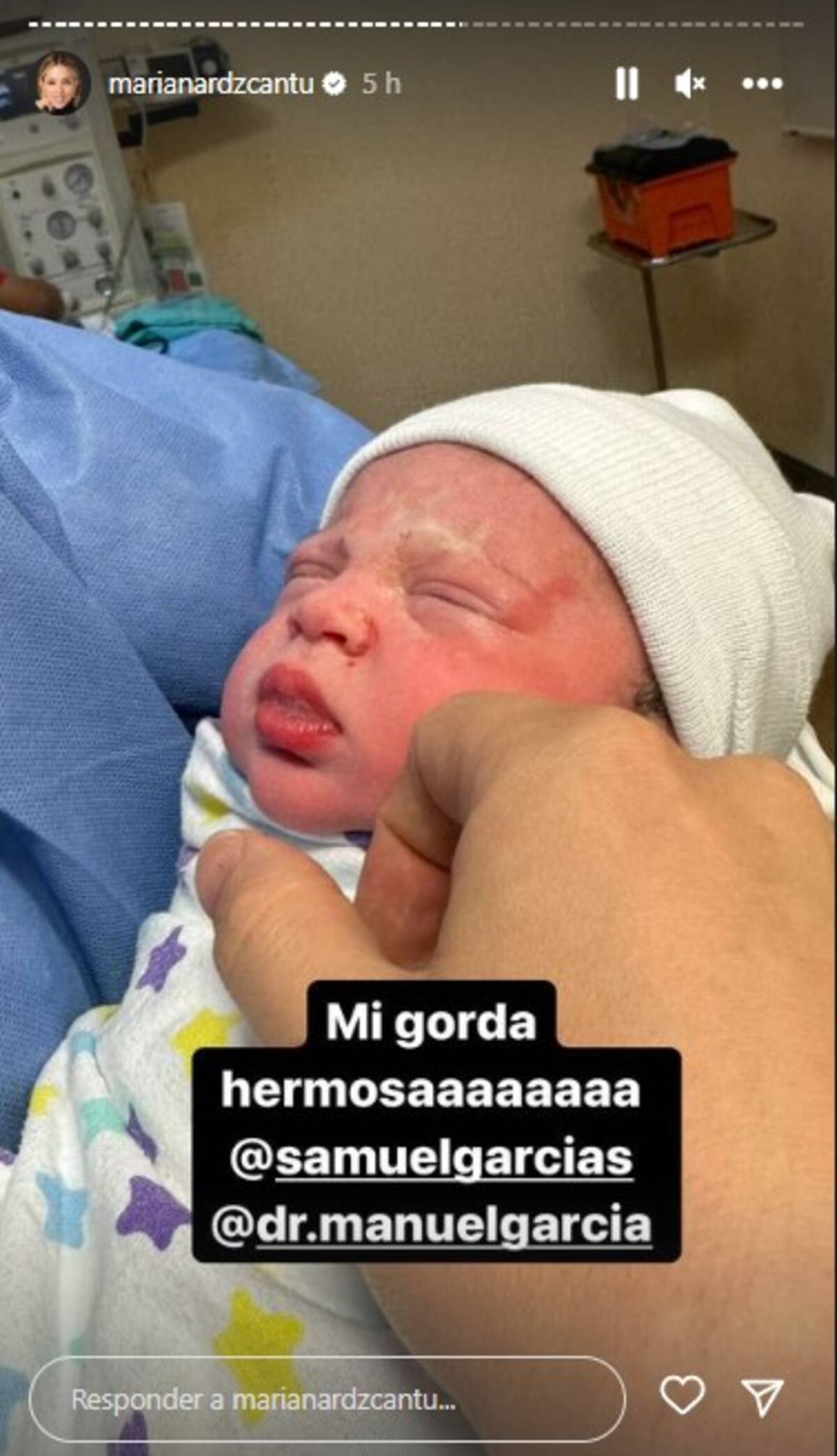 Tras largas horas de espera, Mariana Rodríguez publicó en la madrugada una fotografía donde aparecía junto con Samuel García posando a lado de Mariel, una bebé que llegó sana. En otras fotos se veía al papá completamente orgulloso cargando a su pequeña hija y en una más, con las huellitas de Mariel en su camisa.