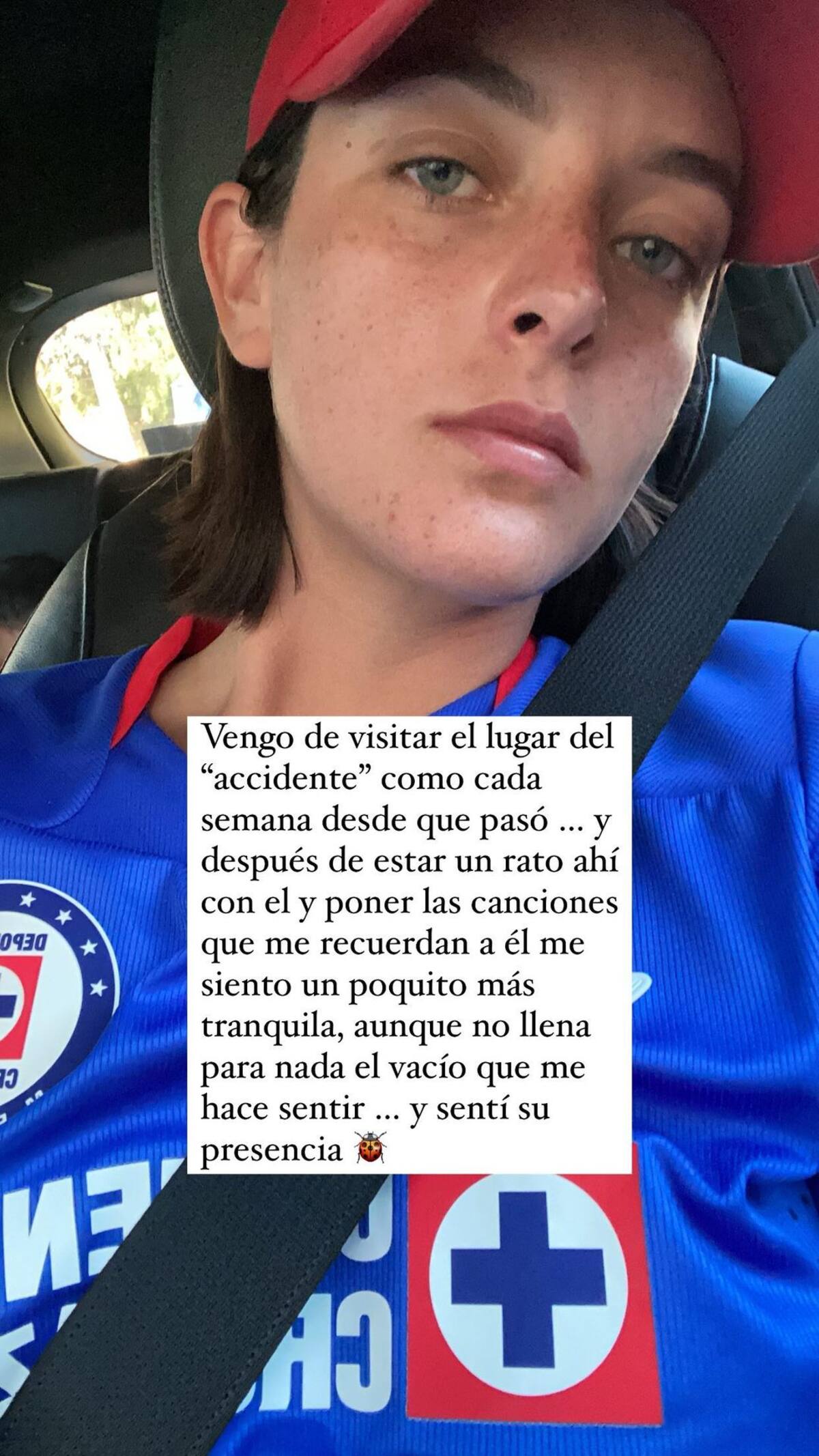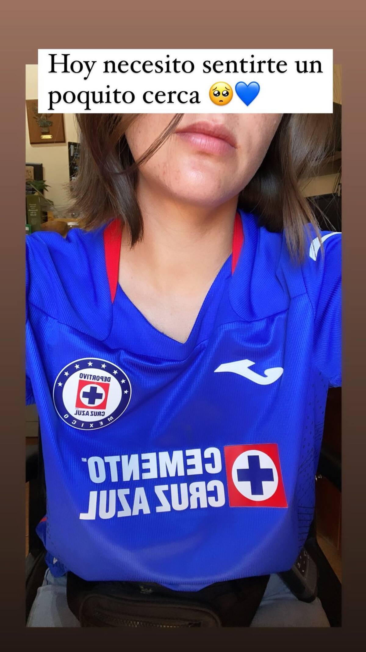 Hoy necesito sentirte un poquito cerca”, escribió en una de sus historias donde aparece luciendo la casaca de Cruz Azul, equipo favorito de su pareja.