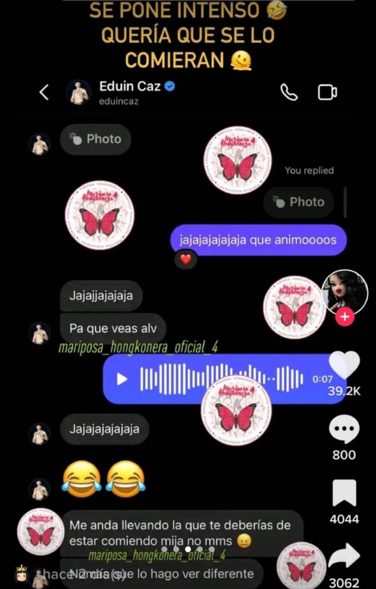 Seguidamente, comienzan a intercambiar fotos, la tercera en discordia le señala que se encuentra animado y Eduin aprovecha para mandarle un audio para explicarle que se encuentra muy bien.