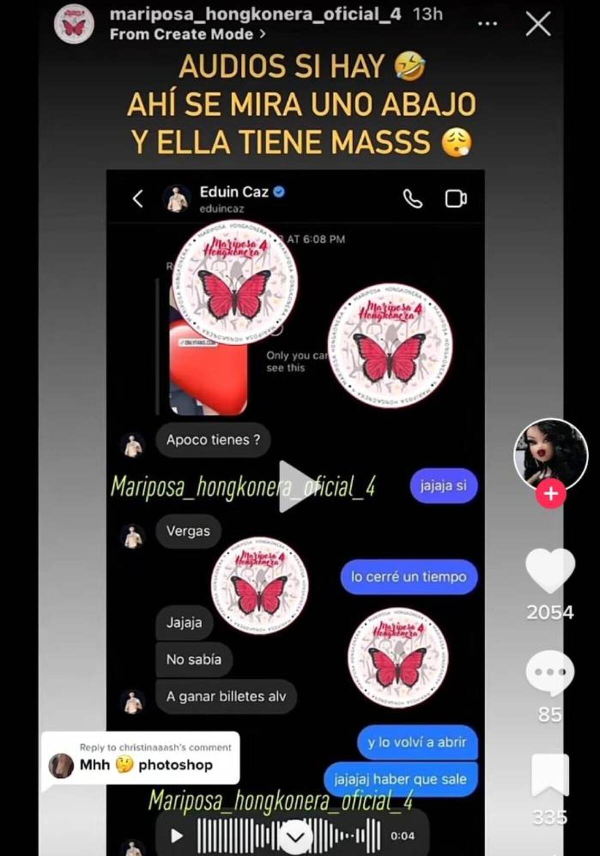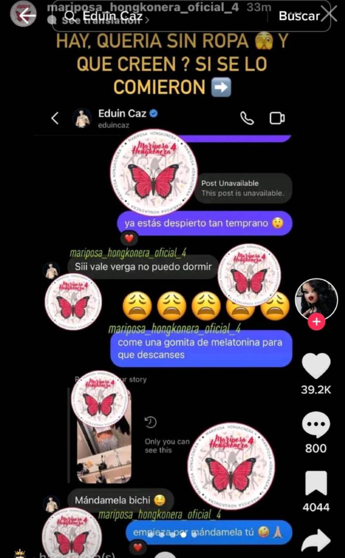 En unas capturas de pantalla de una conversación entre Eduin Caz y la mujer, ésta le pregunta que si porque estaba despierto tan temprano, a lo que le contesta que era porque no había podido conciliar el sueño, por su parte, ella le recomiendo gomitas para que logre descansar.