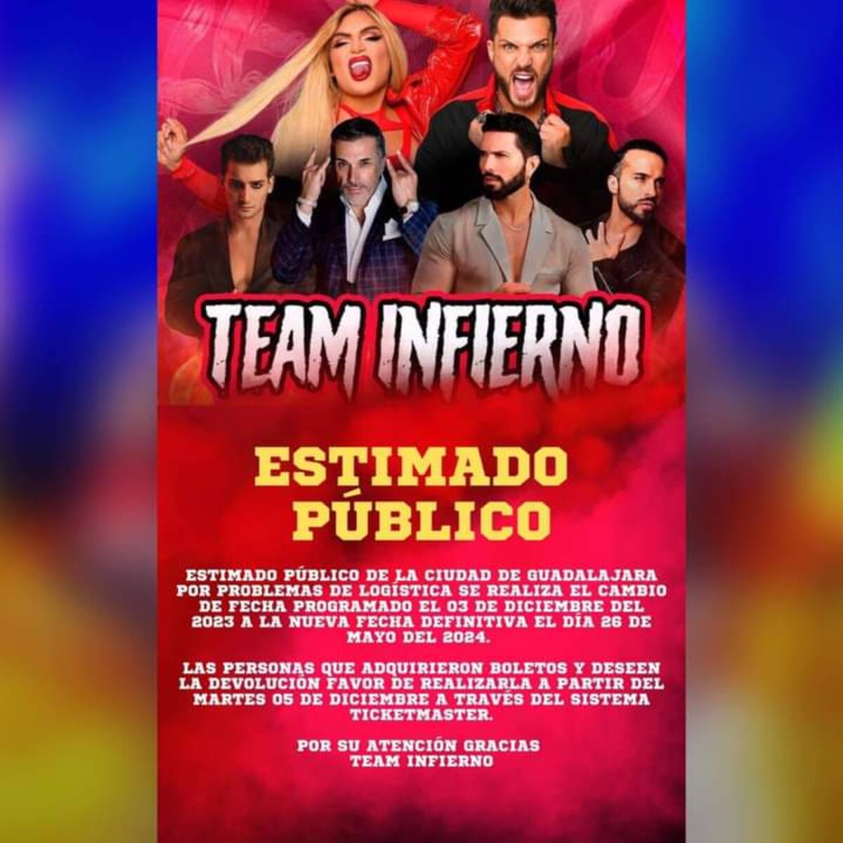 En un giro inesperado, esta mañana, a través de un comunicado difundido en redes sociales, se anunció la cancelación de la presentación en vivo del Team Infierno programada para hoy. La nueva fecha propuesta para este evento es el 26 de mayo del próximo año.