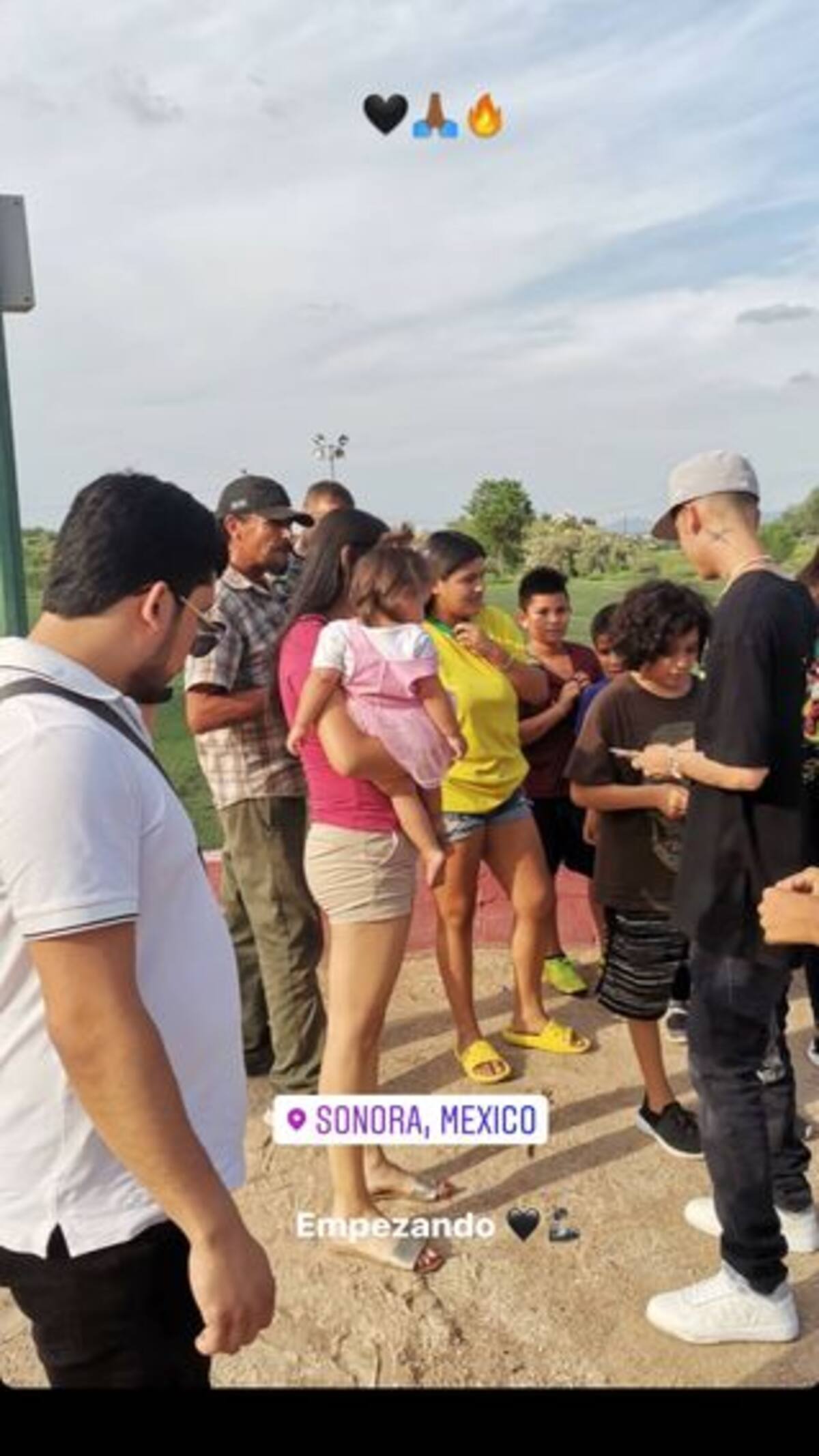 En algunos videos que compartió el cantante sonorense se puede ver rodeado de niños y adultos a quienes les regalaba dinero para que pudieran comer o comprar alguna cosa que les hiciera falta.