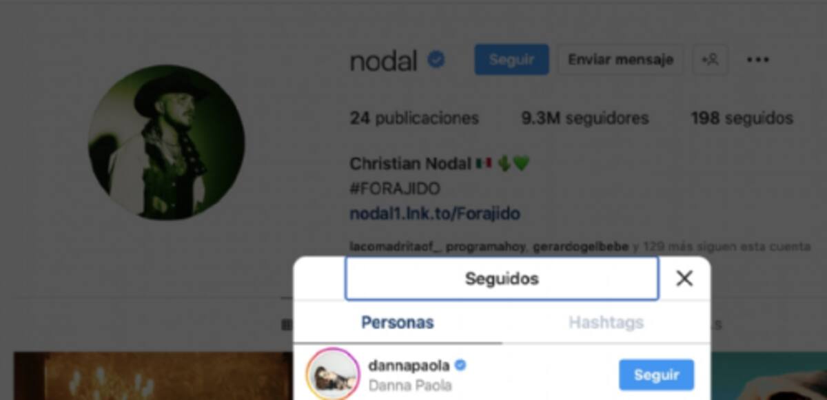 Christian Nodal sigue a Danna Paola en Instagram