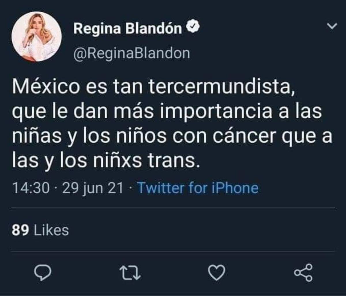 En el mensaje se puede leer “México es tan tercermundista, que le dan más importancia a las niñas y los niños con cáncer que a las y los niñxas trans”, generando una ola de odio en contra de la actriz.