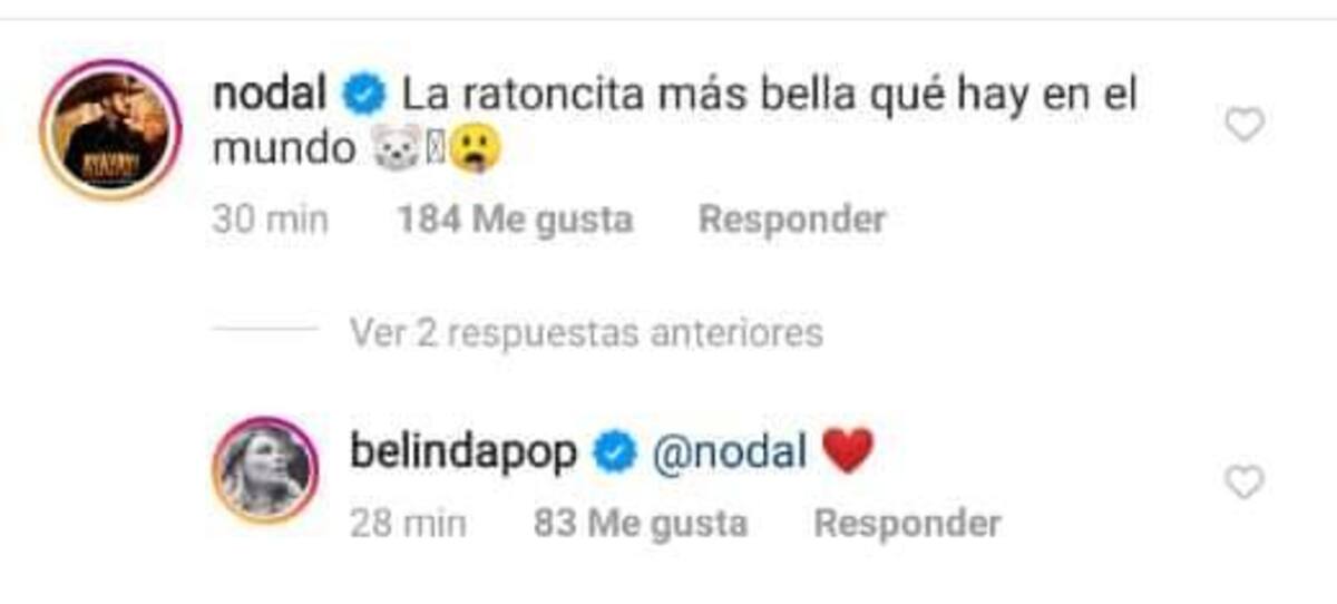 “La ratoncita más bella que hay en el mundo”, escribió Nodal en una publicación de Beli, por lo que ella respondió al con un Emoji de corazón.