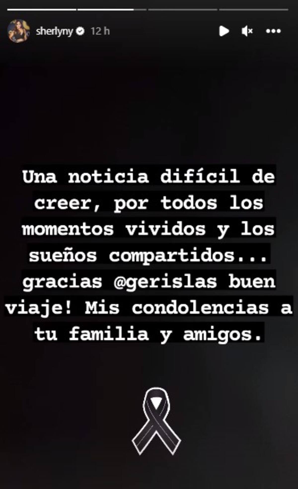Una noticia difícil de creer, por todos los momentos vividos y los sueños compartidos… ¡Gracias @gerislas buen viaje! Mis condolencias a tu familia y amigos”, fue el mensaje que escribió la actriz.