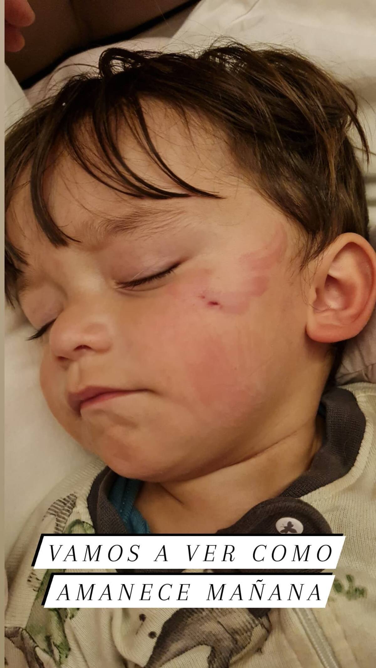 Después de dar esta noticia, la también cantante publicó una foto de André en donde se observa dormido y con un moretón en su cachete.