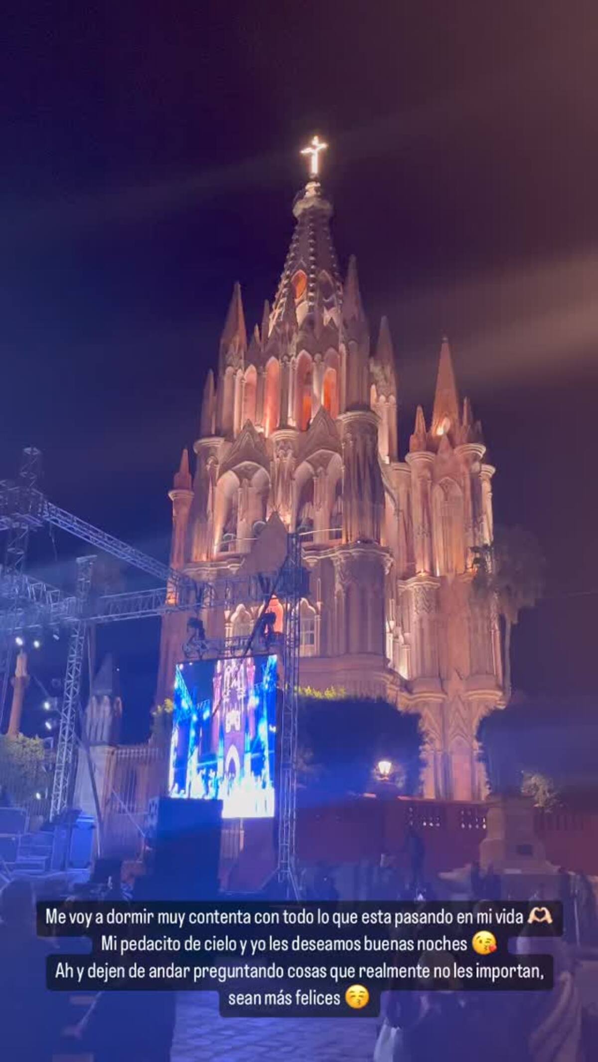 “Me voy a dormir muy contenta con todo lo que está pasando en mi vida. Mi pedacito de cielo y yo les deseamos buenas noches. Ah, y dejen de andar preguntando cosas que realmente no les importan. Sean más felices”, publicó.