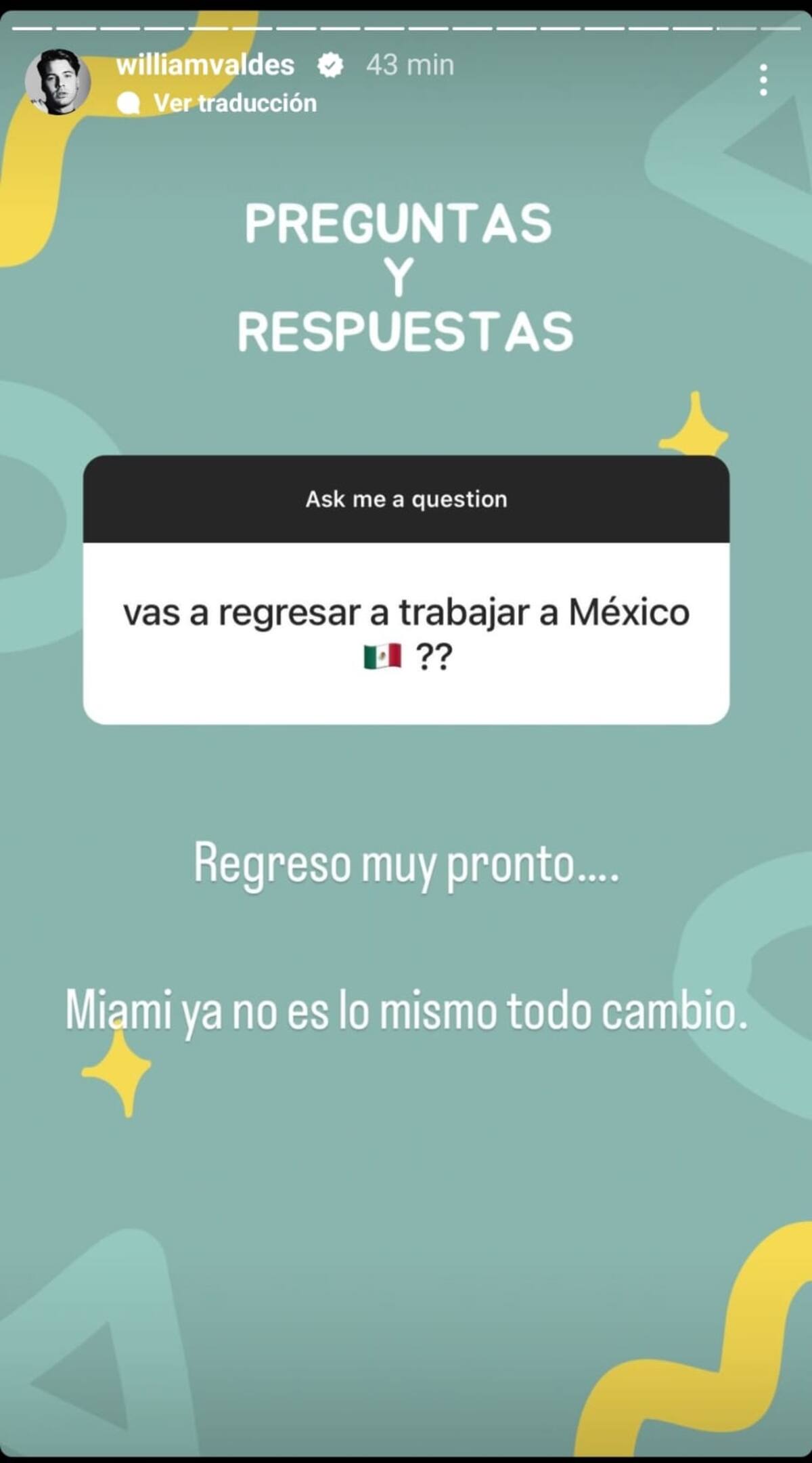 En una de las respuestas, Valdés sugirió su regreso a México en un futuro cercano, dejando claro que su experiencia en Miami no fue lo que esperaba, lo que podría señalar un regreso a las pantallas mexicanas.