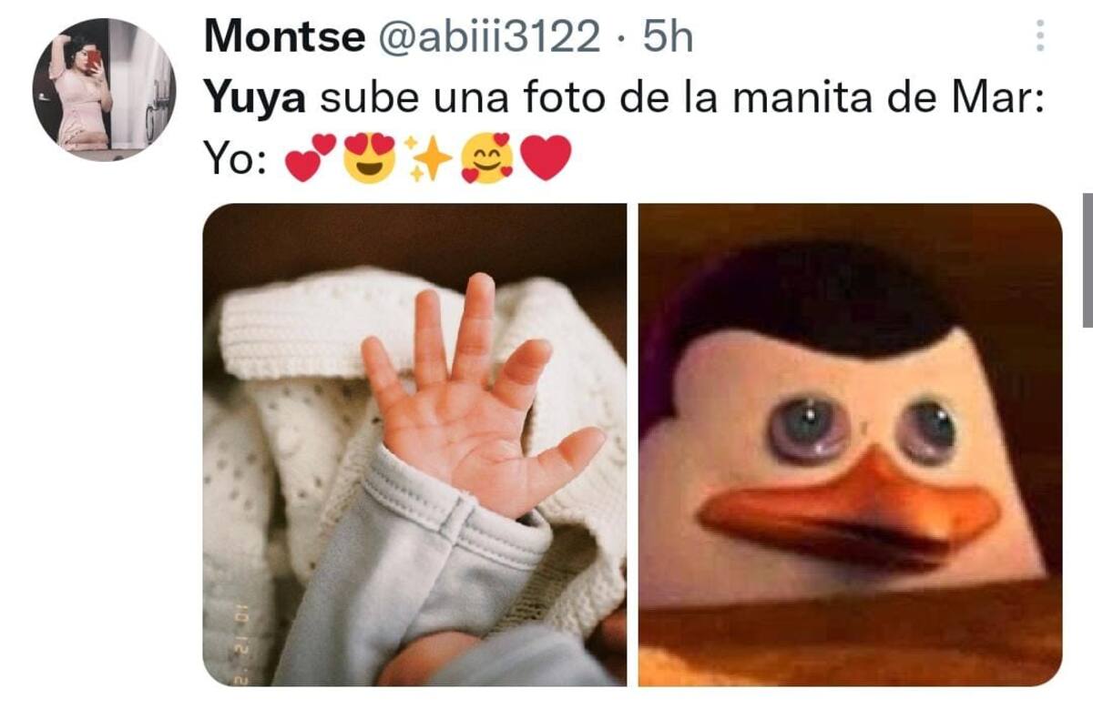 En la imagen solo podemos ver la pequeña mano derecha del recién nacido, así como una descripción en la que podemos leer “Mar está en la tierra y yo en las nubes”.