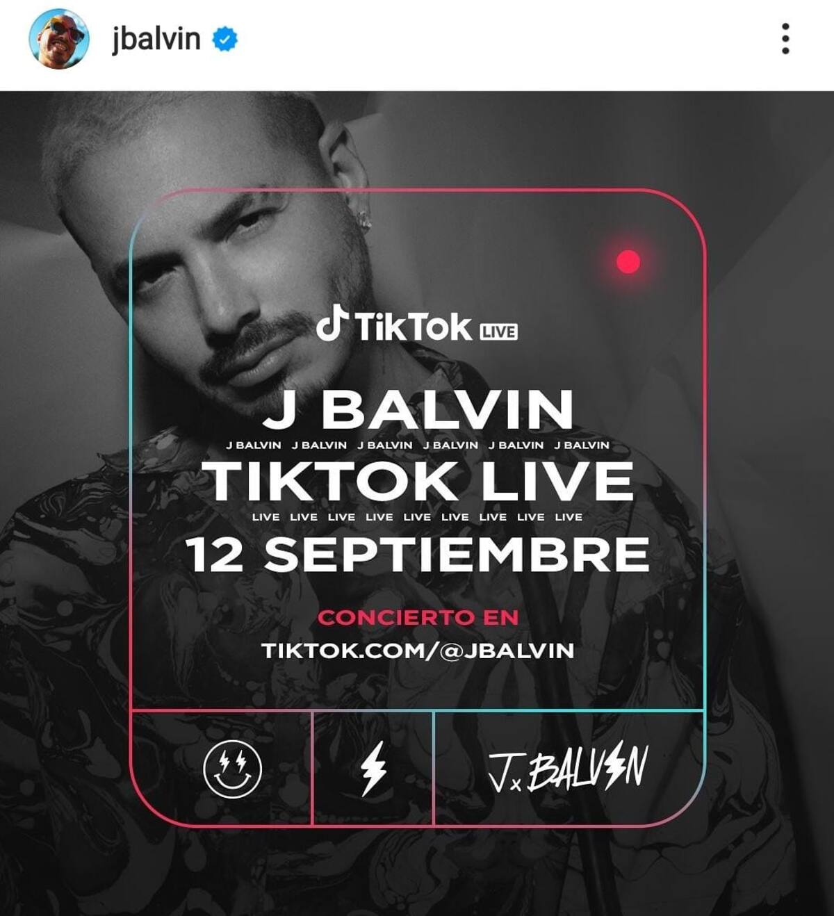 ESTADOS UNIDOS. – Este domingo J Balvin dio a conocer a través de sus redes sociales que dará un concierto en vivo a través de su cuenta TikTok, por lo que será completamente gratis.