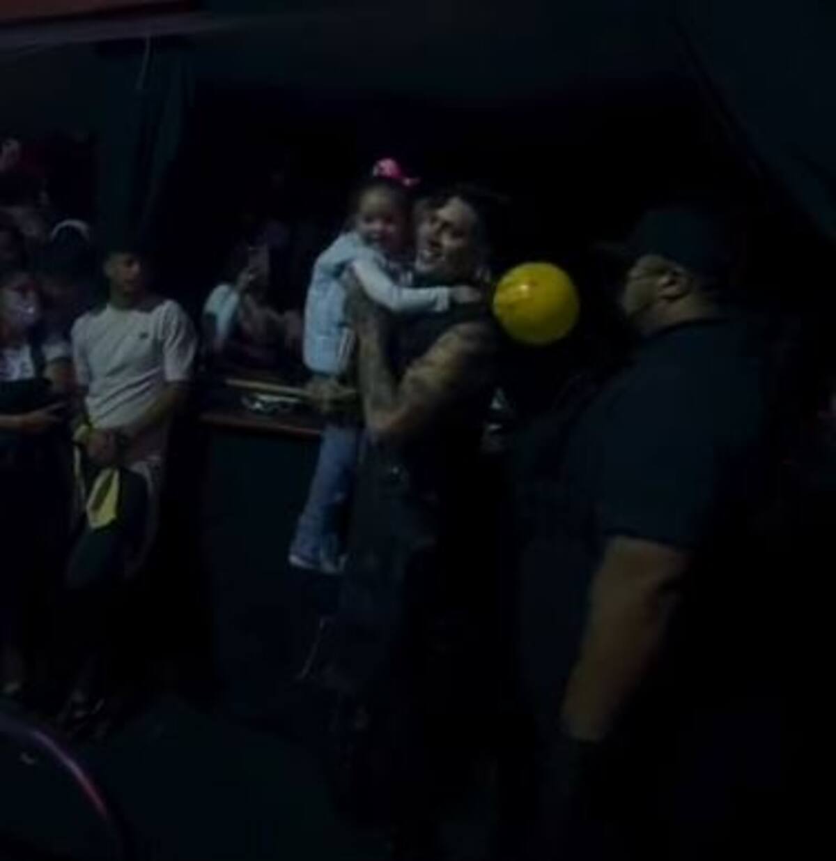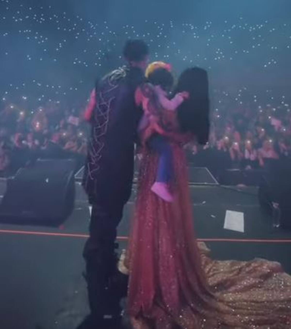 De acuerdo a unos videos publicados, la pequeña estaba entre el público con el equipo de trabajo de la familia, y mientras la audicencia coreaba el tema a todo pulmón, Dj Pantoja fue por su hija y con un peculiar globo amarillo en la mano fue que debutó en el esenario.