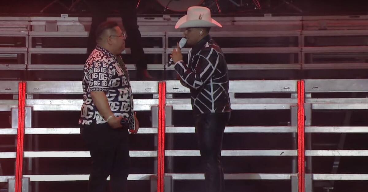 Fue durante su presentación en el Estadio Sofi en Los Ángeles, California, que el vocalista de Grupo Firme invitó a su representante a pasar al escenario para dedicarle el exitoso tema.