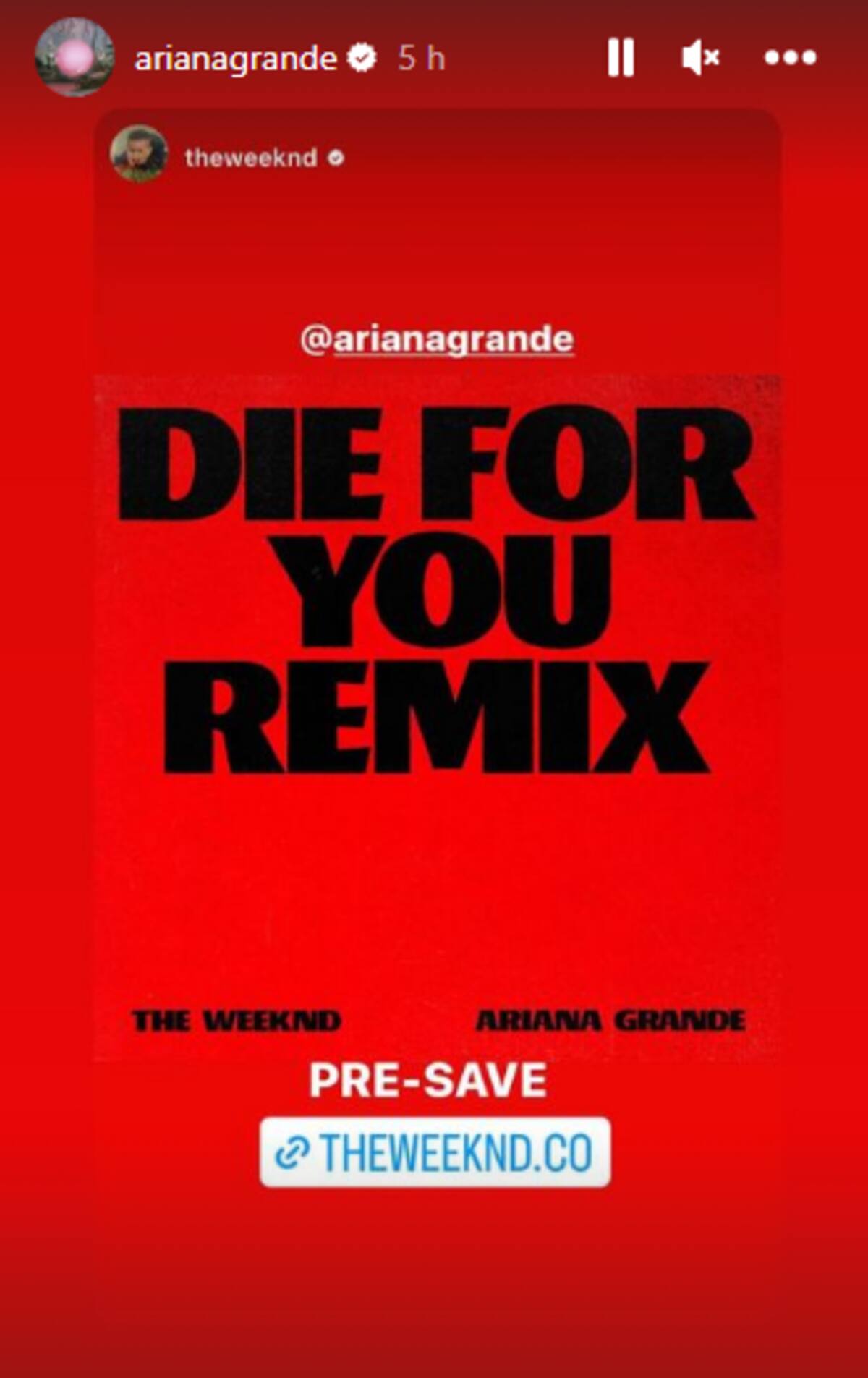 Por su parte, The Weeknd destacó la mención en su cuenta de Instagram e insertó un emoji con ojos llorosos en la publicación. Posteriormente, anunciaron de manera oficial el remix de “Die For You”, el cual se estrenará el próximo viernes 24 de febrero.