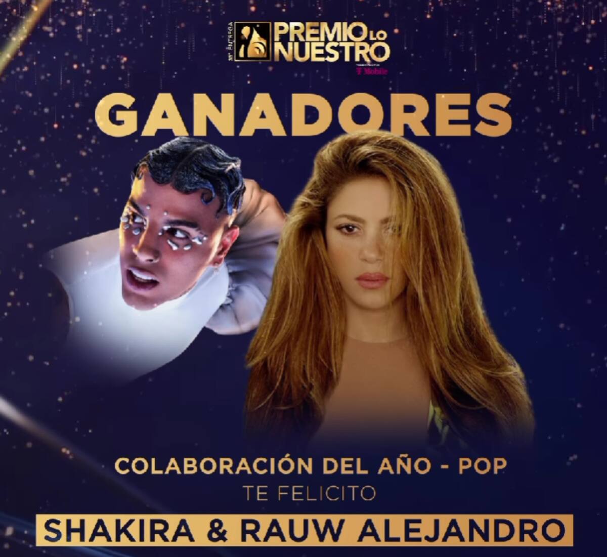 La noche inició galardonando a dos grandes figuras del espectáculo, siendo nada más y nada menos que Shakira y Rauw Alejandro en la categoría de “Colaboración del año de la música pop” con el tema “Te Felicito”.
