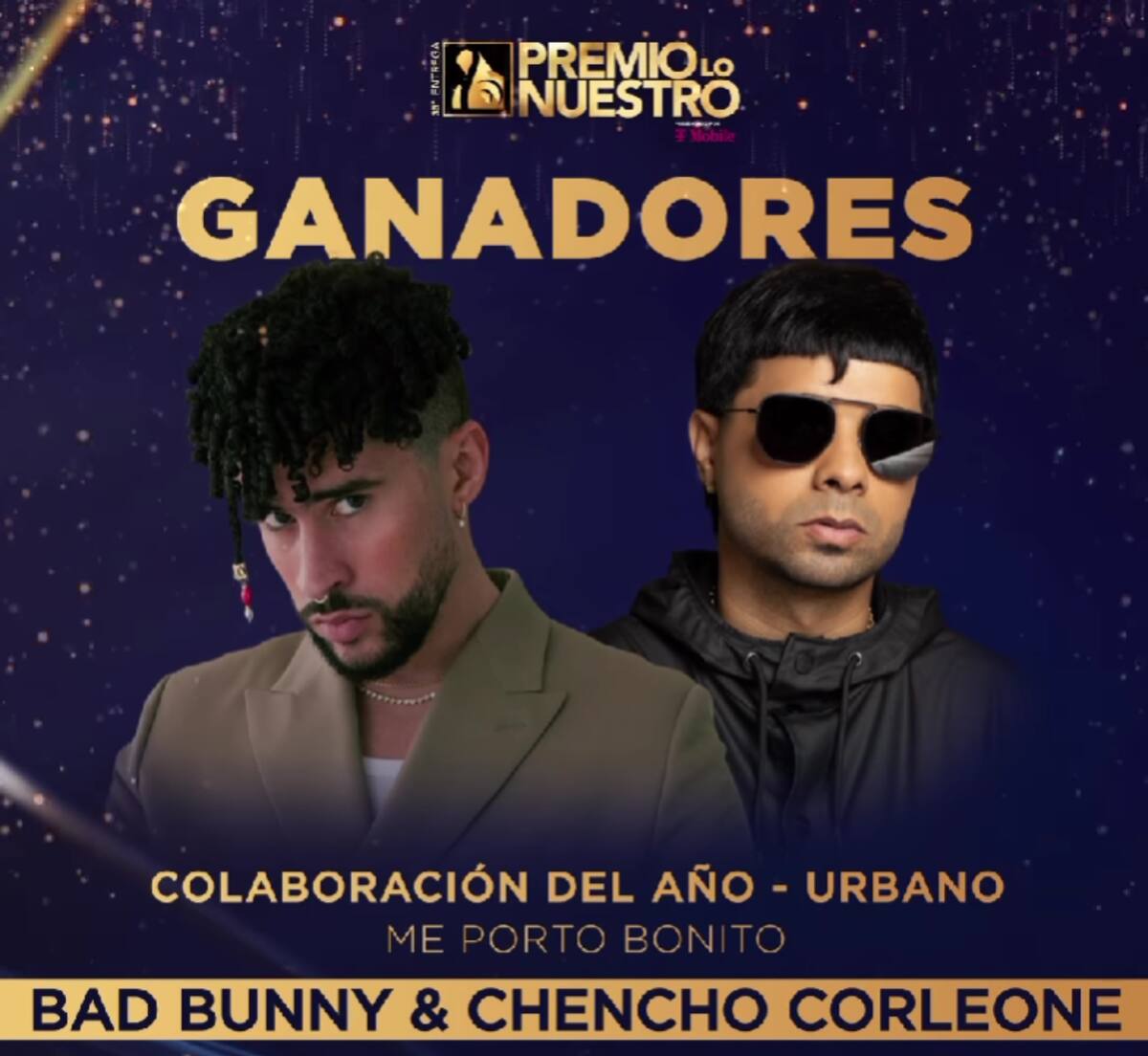 Bad Bunny nuevamente subió al escenario para llevarse una premiación más, pero en esta ocasión junto a Chenco Corleone, gracias a su canción “Me porto bonito”, mismo que lideró la categoría de “Colaboración del año en el género urbano”.