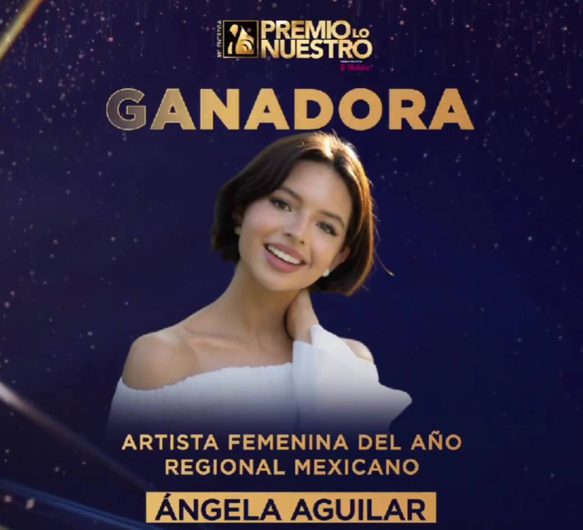 La joven talentosa Ángela Aguilar no podía irse sin ser premiada, pues su talento le valió para llevarse el premio a “Artista femenina del regional mexicano”.