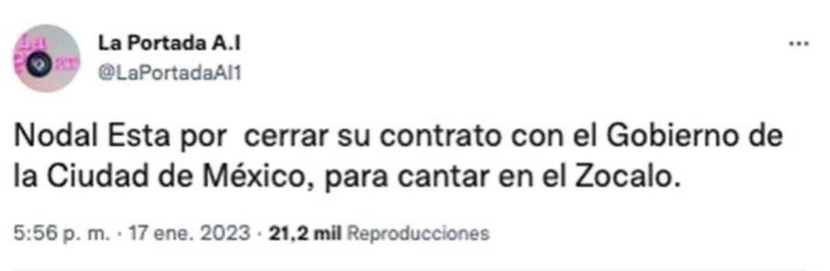 Nodal está por cerrar su contrato con el Gobierno de la Ciudad de México, para cantar en el Zócalo”, informó la cuenta en un tuit.