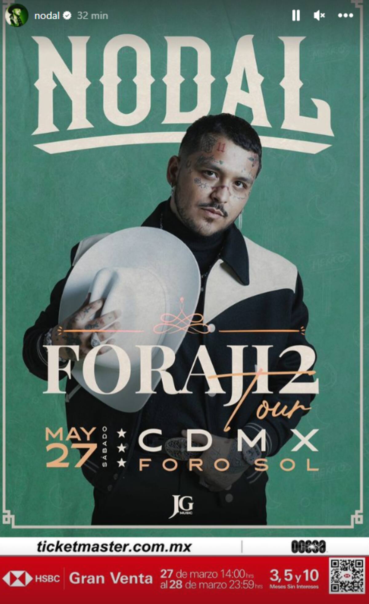 Ahora, el cantante sonorense anunció la que podría ser su presentación más grande hasta el momento. Y es que, Nodal dio a conocer que se presentará en el Foro Sol, el próximo 27 de mayo en Ciudad de México.