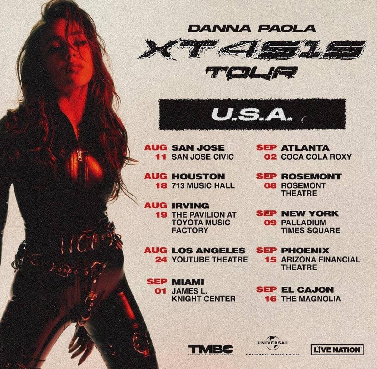 ESTADOS UNIDOS. – Hace dos días Danna Paola dio a conocer a través de sus redes sociales su primera gira por Estados Unidos con su “XT4S1S Tour”.