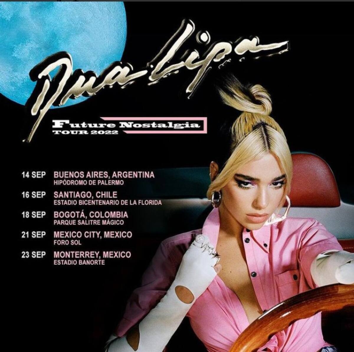 Dua Lipa detalló que este tour por Latinoamérica abarca los siguientes países: Argentina, Chile, Colombia y México.
