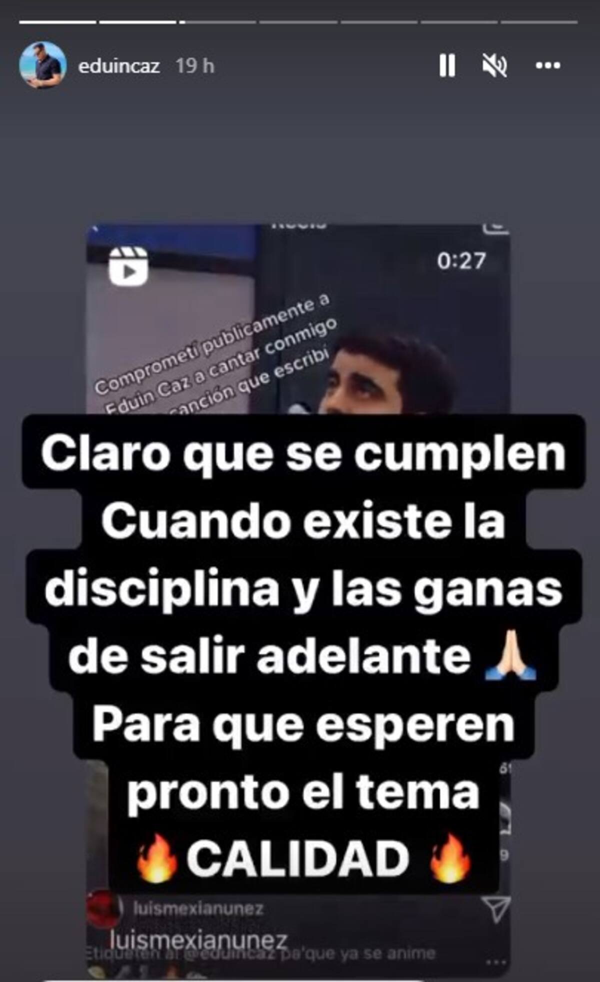 Etiqueten a Eduin Caz pa’ que se anime a cantarla conmigo”, escribió Luis Mexia junto a un video donde aparece dentro de un estudio de grabación cantando el tema “Calidad”.