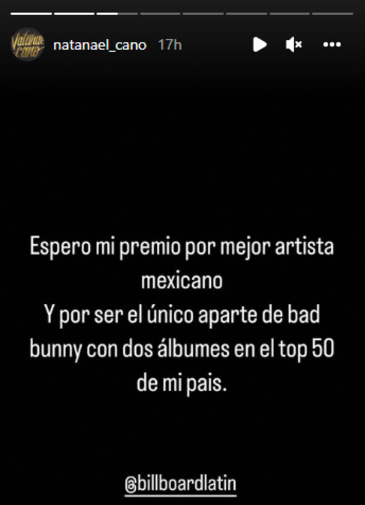 A través de Instagram, el cantante de corridos tumbados expuso su enojo sobre una aparente nominación o terna en la que no fue incluida su más reciente producción.