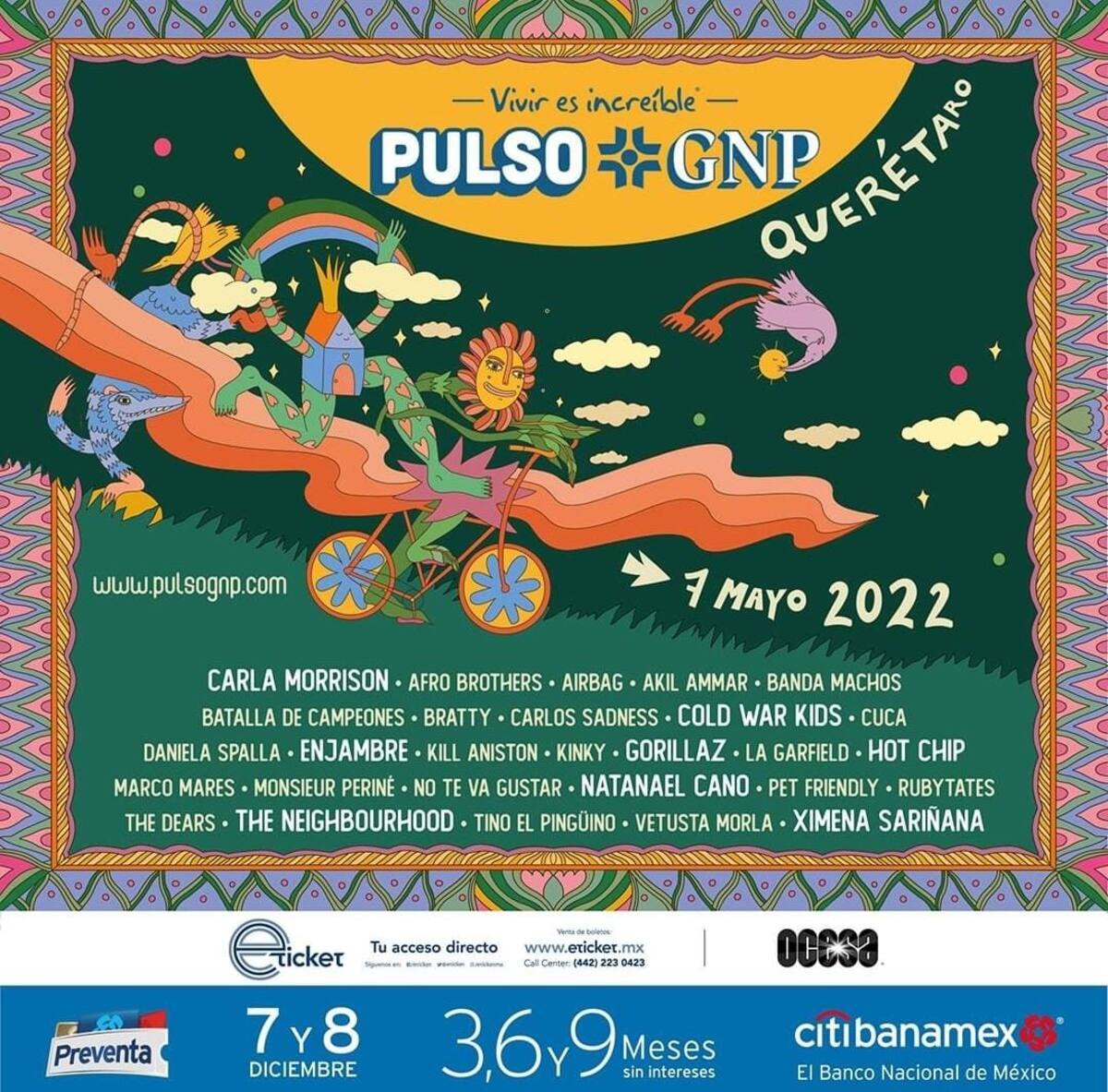 QUERÉTARO. – Este lunes, el festival de música “Pulso GNP” dio a conocer su cartel para el próximo año, el cual está encabezado por la banda Gorillaz.