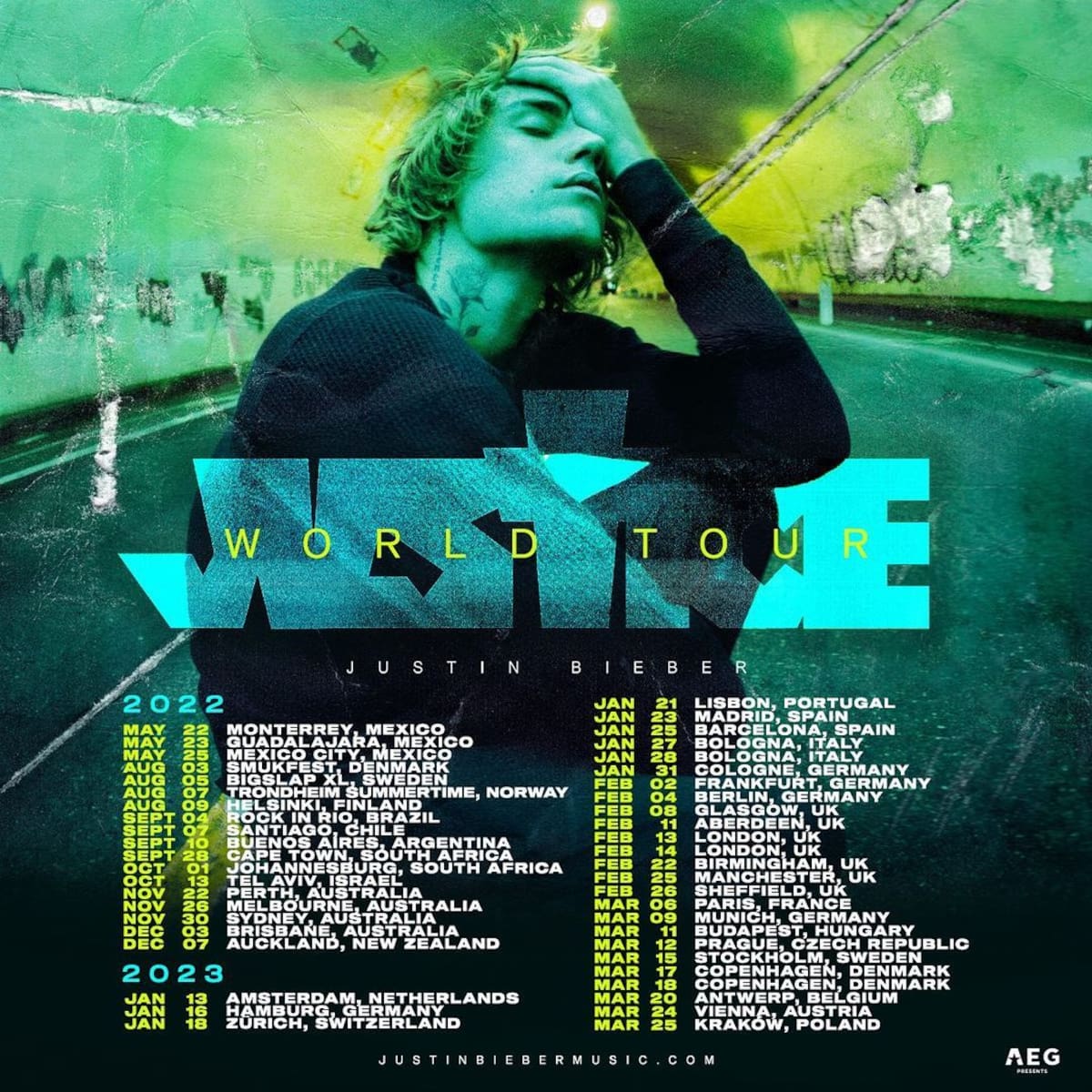 Justin Bieber también estará en otros países de Latinoamérica, como Brasil, Chile y Argentina en el curso del próximo mes de septiembre de 2022, mientras que Madrid y Barcelona lo esperan el próximo mes de enero de 2023.