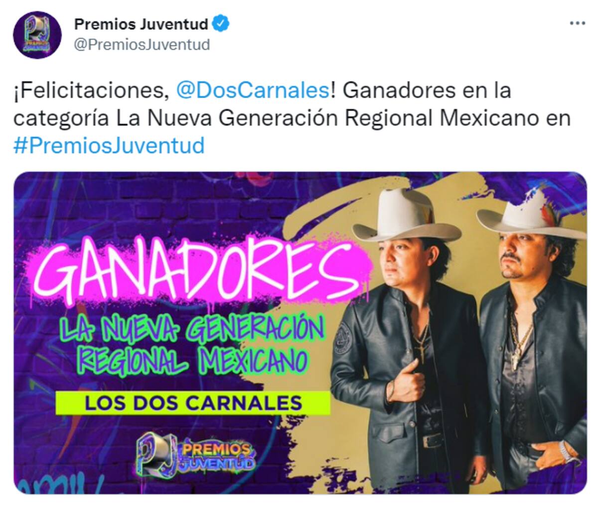 Mejor Canción Regional Mexicana: “El Envidioso” de Los Dos Carnales