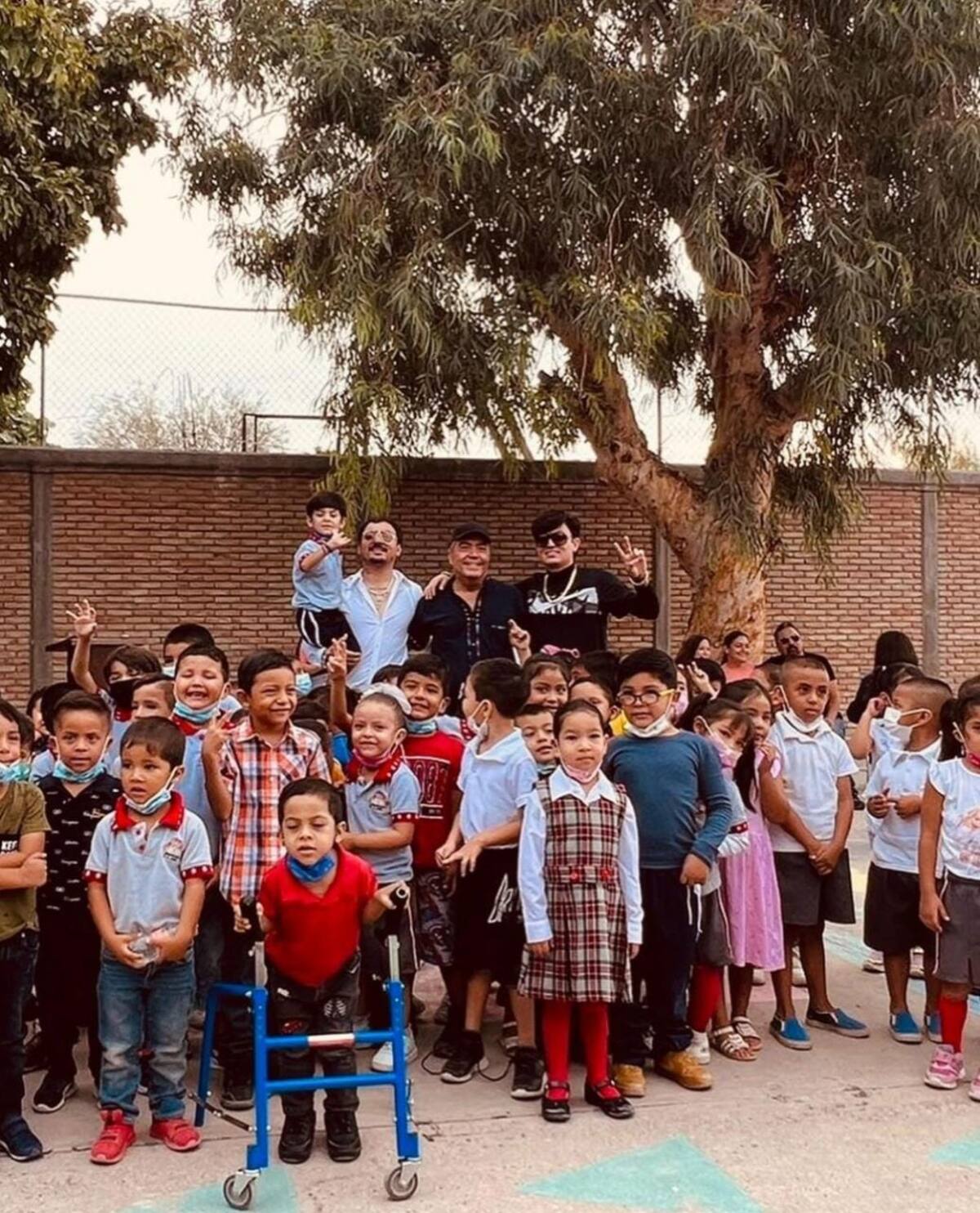 Posteriormente, Poncho e Imanol Quezada estuvieron conviviendo con los pequeños estudiantes, con quienes se tomaron varias fotos, las cuales fueron publicadas en la redes sociales de su disquera, “Afinarte Music”.