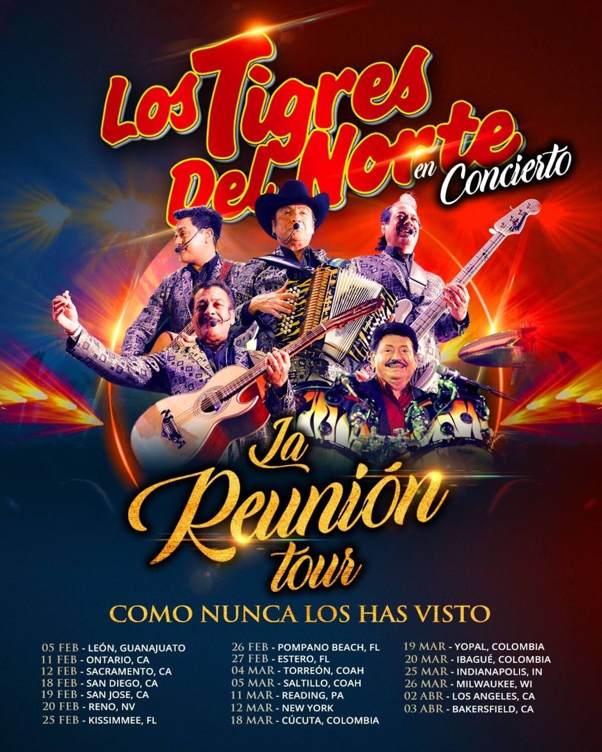 Sin embargo, Los Tigres del Norte visitarán más ciudades en Estados Unidos, ya que comenzarán en febrero y culminarán en abril.