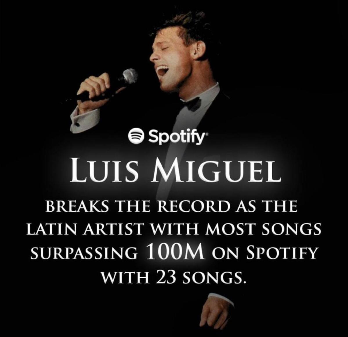 El propio actor compartió la noticia a través de sus historias en Instagram, anunciando con orgullo el récord alcanzado: "Luis Miguel rompe el récord como el artista latino con más canciones superando los 100 millones en Spotify con 23 canciones".
