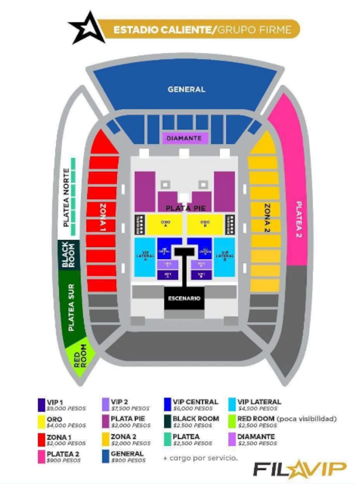 Entre las tarifas que manejan para la presentación musical que se llevará a cabo en el Estadio Caliente de la ciudad fronteriza, están desde 900 pesos el más económico, y llega hasta la cantidad de nueve mil pesos, el más caro y en la mejor zona.