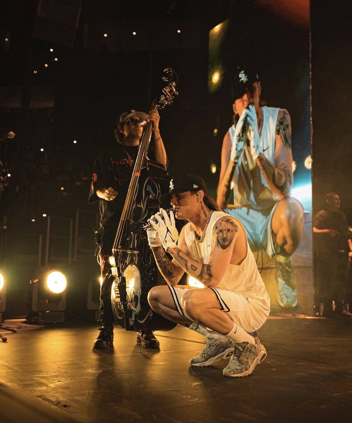 El escenario se llenó de talento mexicano cuando compartió micrófono con Jasiel Núñez, entonando a dúo éxitos como “Rosa Pastel” y “Lagunas”, además de presentar a Alemán como "el mejor rapero de México" y cantar juntos su colaboración "Delivery".