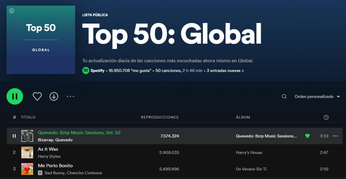 Sin embargo, el tema que se ha convertido en un hit se colocó por tercera semana consecutiva en el puesto número uno en Spotify a nivel global.
