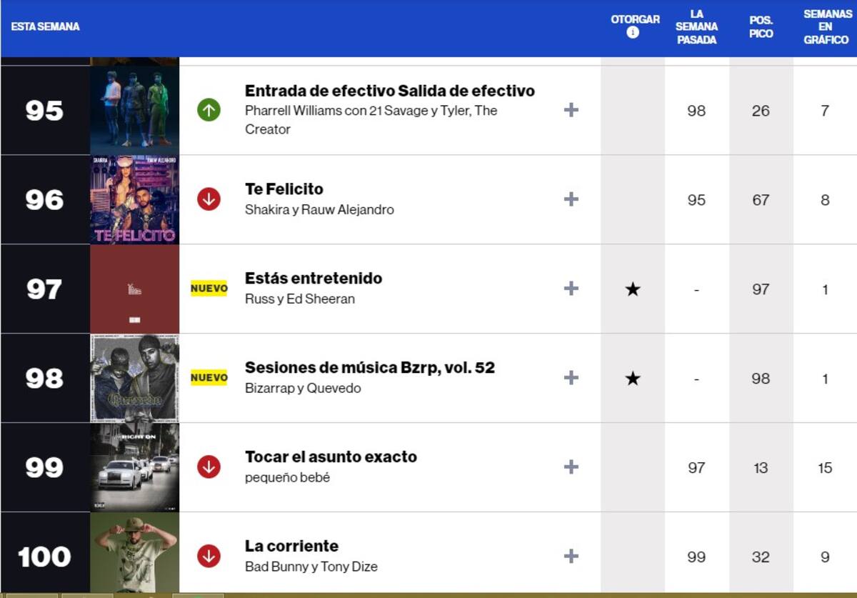 Por si esto no fuera poco, el sencillo entró a la principal lista de éxitos de Estados Unidos, “Billboard Hot 100”, donde se posicionó en el lugar 98.