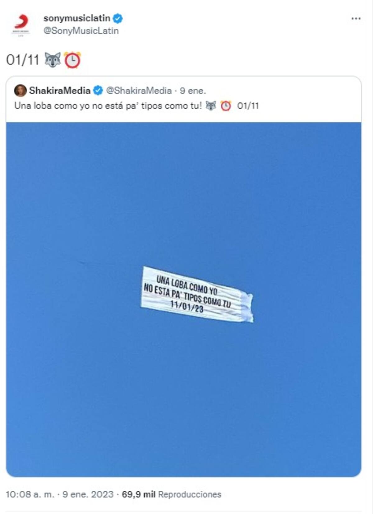 A través de sus redes sociales y de Sony Music, se compartió una fotografía en donde se lee el mensaje: “Una loba como yo no está pa' lobos como tú. 11/01/23”.