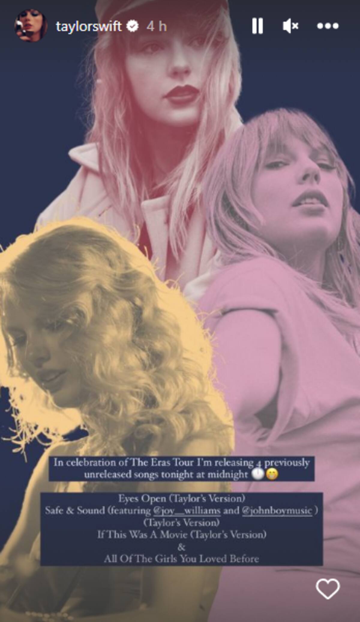 Ante esto, Taylor reveló que, como parte de la celebración del inicio de su gira, presentará cuatro canciones, las cuales incluyen regrabaciones y un tema inédito.