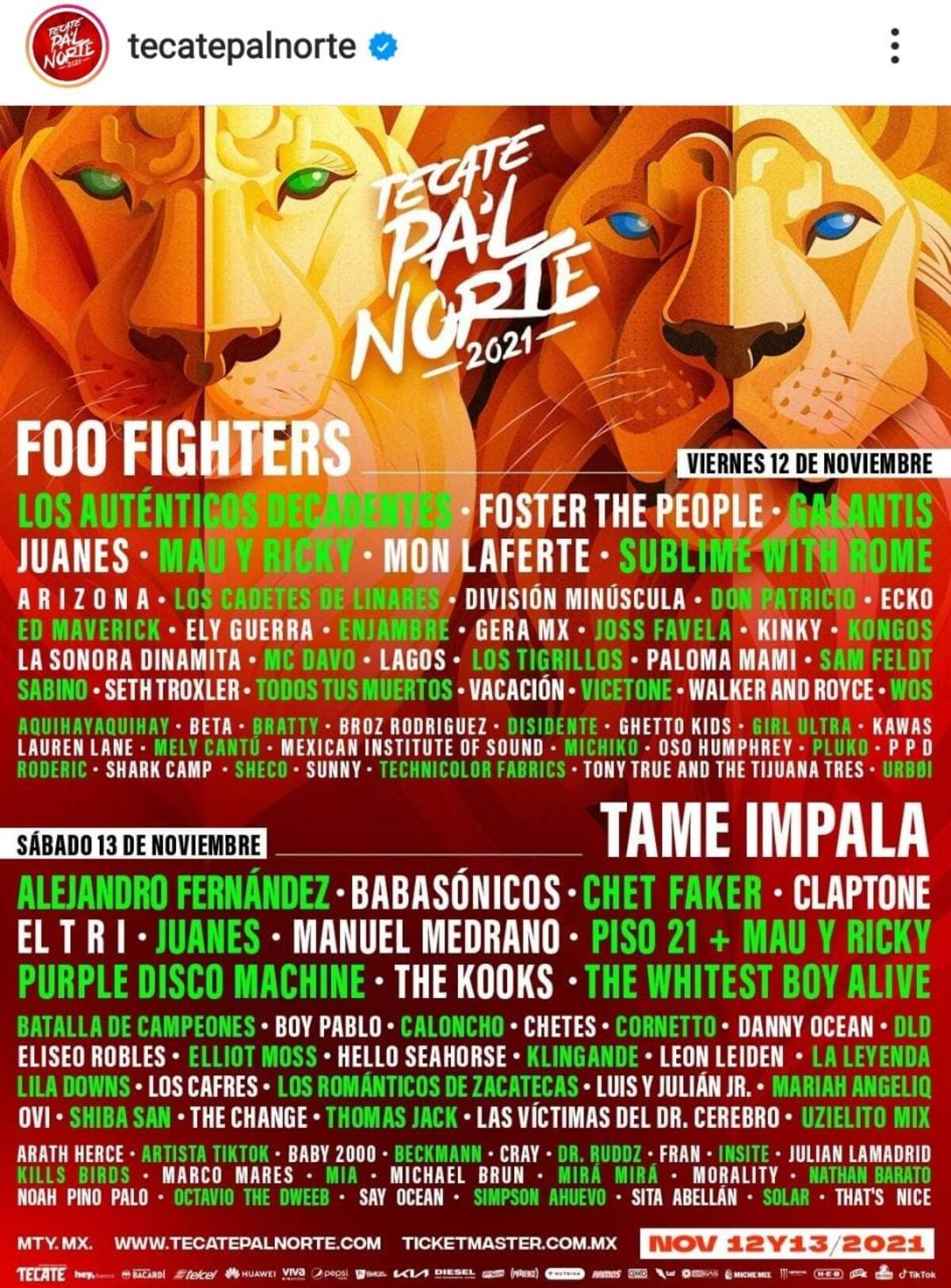 MONTERREY. – Este miércoles, Tecate Pa’l Norte 2021 dio a conocer a través de sus redes sociales a todos los músicos que formarán parte del festival , el cual se llevará a cabo en la ciudad de Monterrey los días 12 y 13 de noviembre.