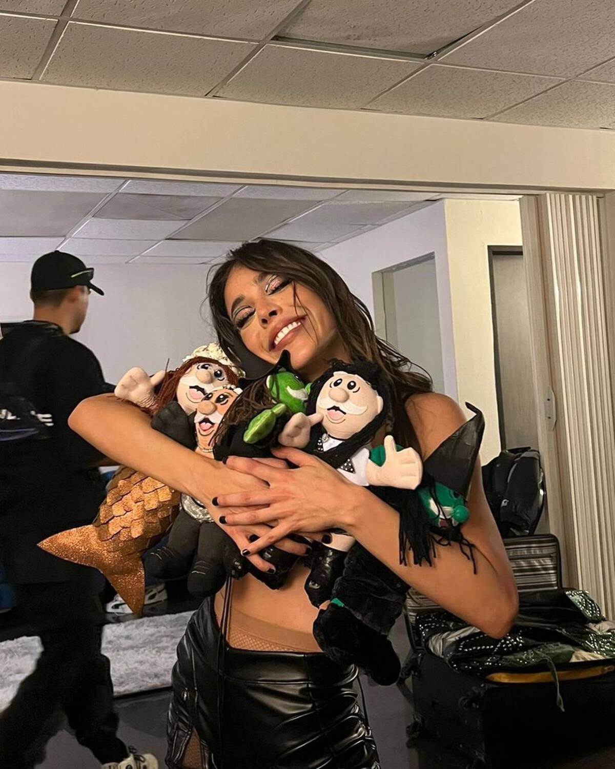 Sin embargo, antes de salir del escenario la artista de 27 años bailó entre luces color neón el remix de “XT4S1S”, pero segundos antes se encuentra de frente con una de sus bailarinas y no pierde la oportunidad de darle un beso.