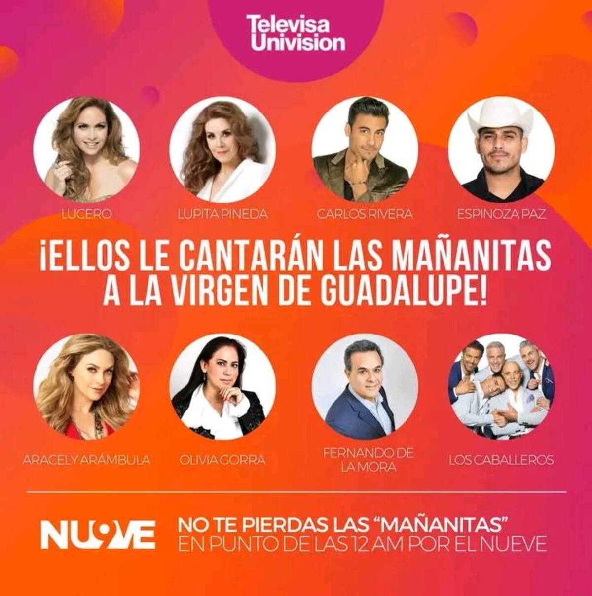 Por otro lado, TV Azteca tiene una lista de cantantes muy completa, que también estarán llevando emotivas melodías a la virgen morena en su día.