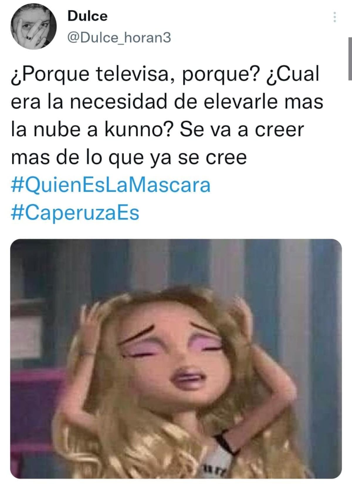 Entre los comentarios de los usuarios podemos leer “¿Por qué Televisa, por qué? ¿Cuál era la necesidad de elevarle la nube a Kunno? Se va a creer más de lo que ya se cree”, “Todo México después de que Caperucita nos caía bien y al final se escuchara la voz de Kunno”, “Lo malo es que Caperuza es Kunno, lo bueno que lo han eliminado”.