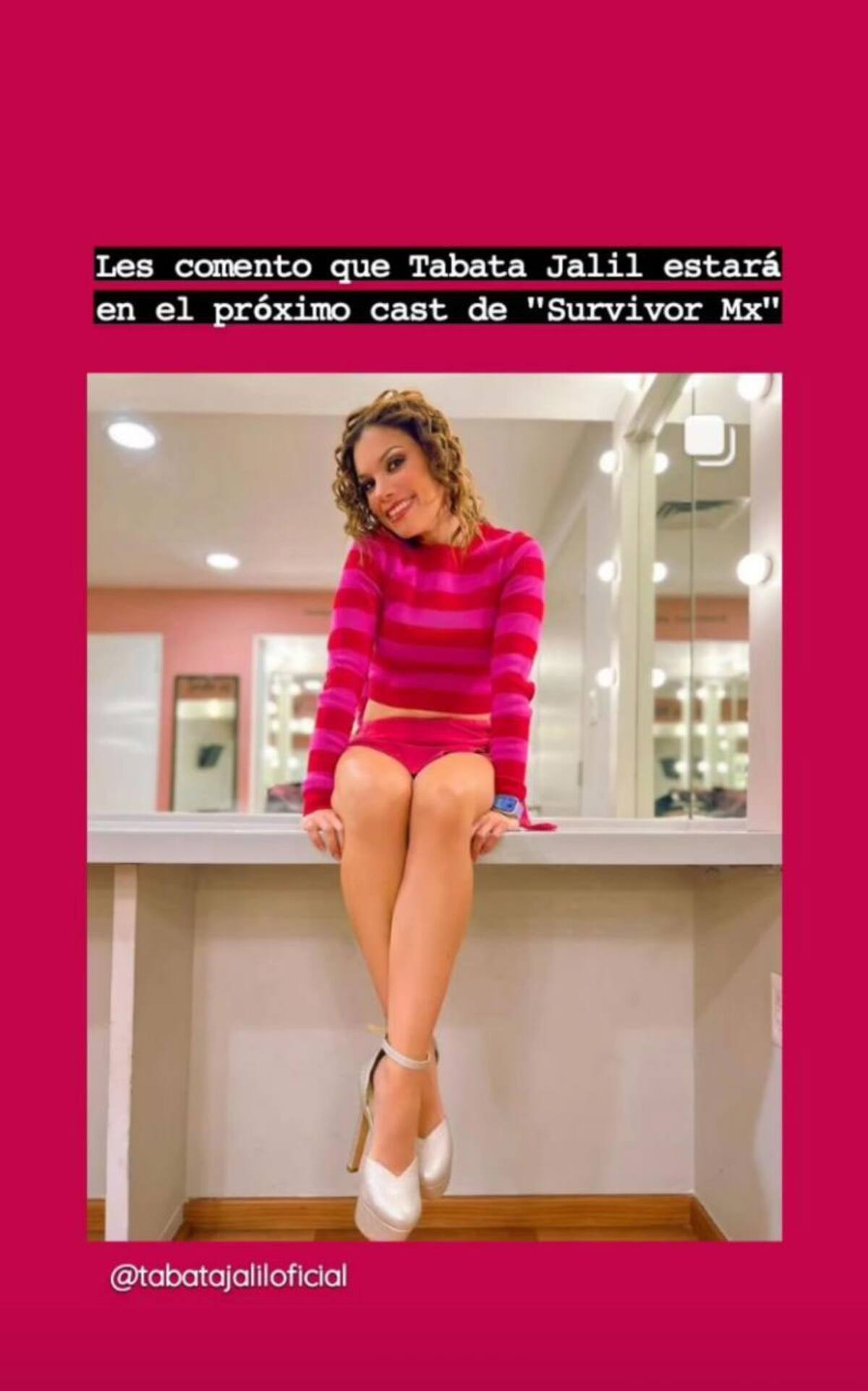 Les comento que Tabata Jalil estará en la cuarta temporada de Survivor Mx”, dice el mensaje con una foto de la comunicadora.