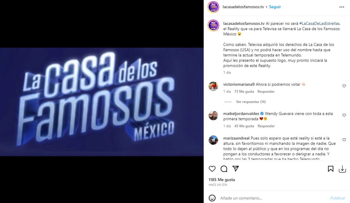 Como saben, Televisa adquirió los derechos de La Casa de los Famosos (USA) y no podrá hacer uso del nombre hasta que termine la actual temporada en Telemundo. Aquí les presento el supuesto logo, muy pronto iniciará la promoción de este reality”, escribieron junto a la fotografía del nuevo logo.