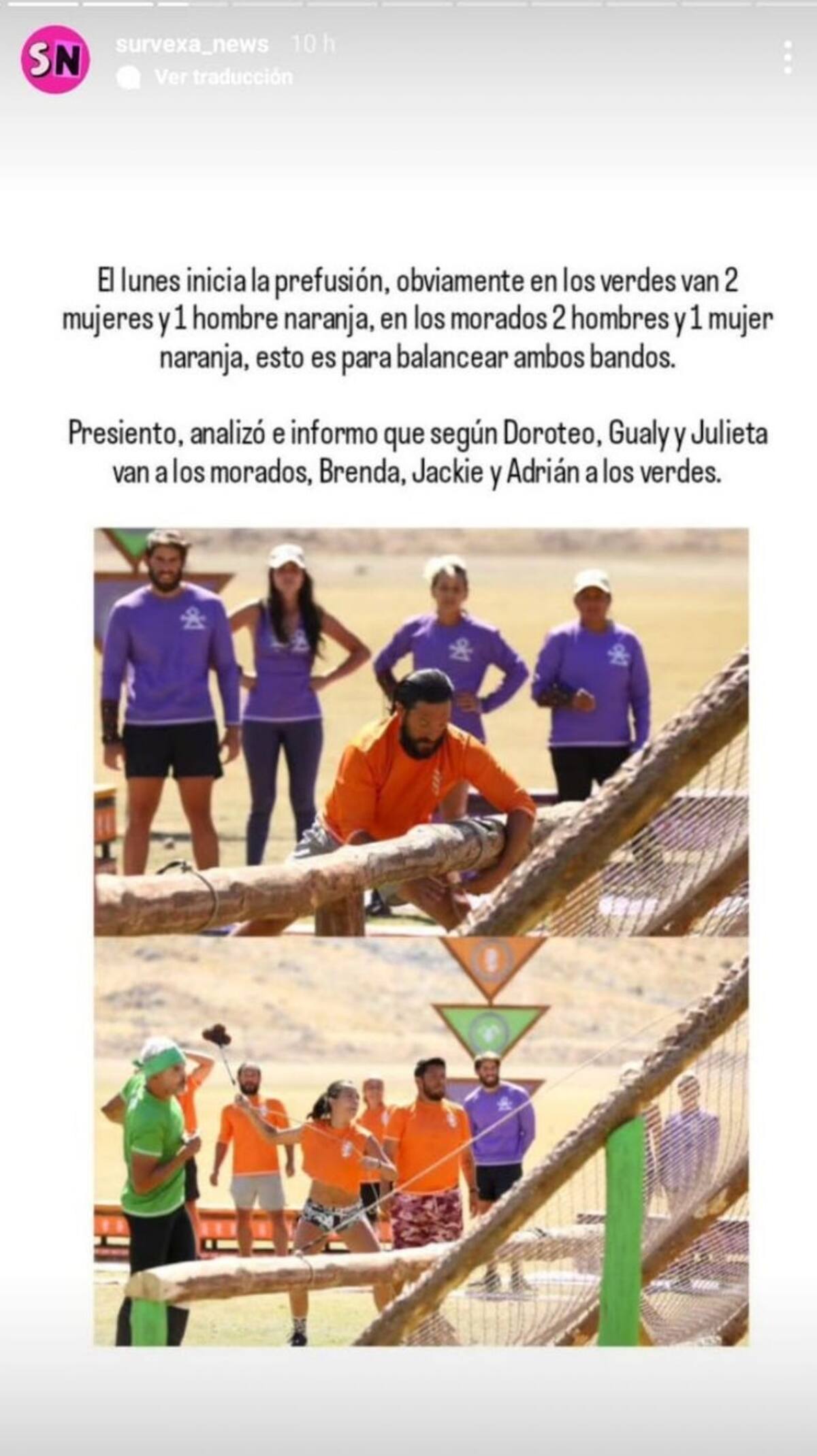 De acuerdo con la mencionada cuenta especializada, en el próximo episodio, los participantes Doroteo, Gualy y Julieta se trasladarán al equipo morado, mientras que Brenda, Jackie y Adrián serán incorporados al grupo verde. Estos cambios, sin lugar a dudas, inyectarán una dosis adicional de intensidad a las pruebas físicas que los contendientes enfrentarán en las próximas etapas del desafío.