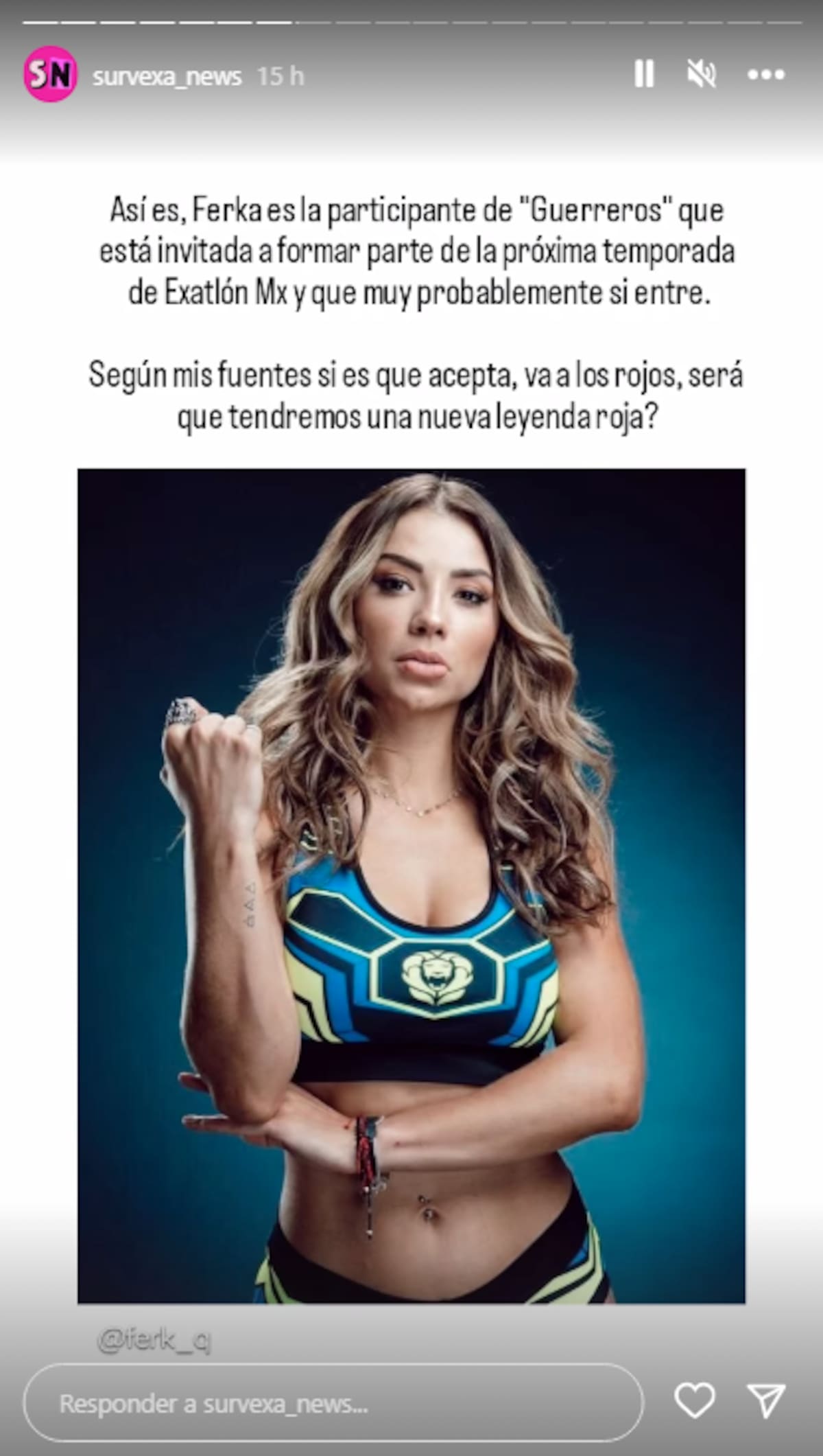 Recientemente, la cuenta de Instagram Survexa News compartió una filtración que ha generado una amplia respuesta en la comunidad en línea. Se especula que la actriz Ferka Quiroz, reconocida por su participación en otros reality shows como Guerreros, La Isla, el Reality: La Revancha, Las Estrellas Bailan en Hoy y La Casa de los Famosos México, podría ser una de las invitadas para la próxima edición de Exatlón México.