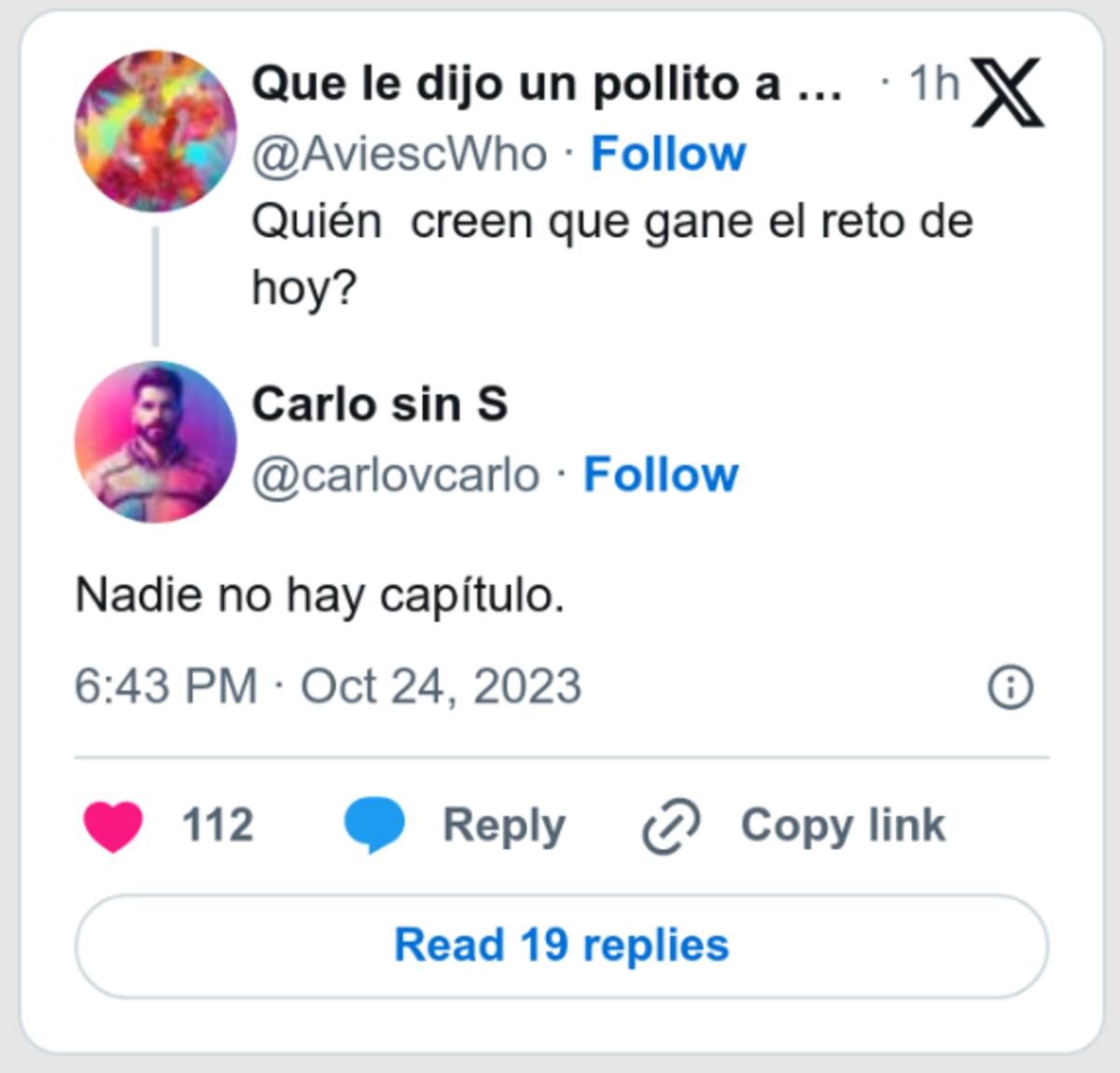 El desconcierto se desató cuando Carlo Villarreal, uno de los productores responsables de la edición de cada episodio, hizo una sorprendente declaración en su cuenta de Twitter: “no hay capítulo”, escribió. Las redes sociales se llenaron de inquietos comentarios y especulaciones entre los seguidores, muchos de los cuales aún se muestran escépticos ante esta revelación.